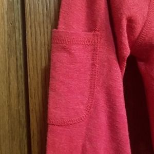 Pullover style top in light red. Stitching down front and back and small Pocket on arm. 60% polyester, 33% rayon and spandex blend for lots of stretch. 17" armpit to armpit and length is 24". Great top