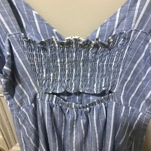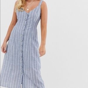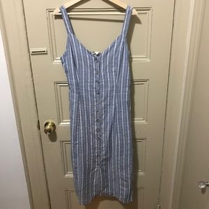 Gilli Button Down Midi Dress in Stripe. Size medium. A tiny bit of pilling on the side of dress. Pictured above.