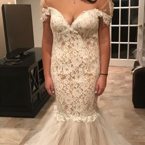 BRAND NEW. Gorgeous brand new Tarik Ediz ivory gown with tags, size 8. Includes Tarik Ediz garment bag. Gown is perfect for prom,wedding, or any formal event!