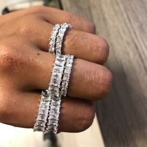 Trust me, you will swear these are real stones they look that good. The round stones are set in a silver colored metal and as clear as ice! Stack these for tons of sparkle or just wear one, either way you will be drippin'....