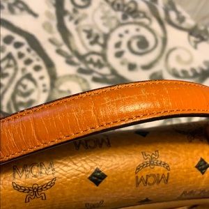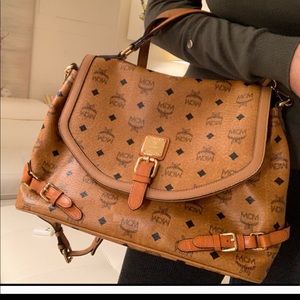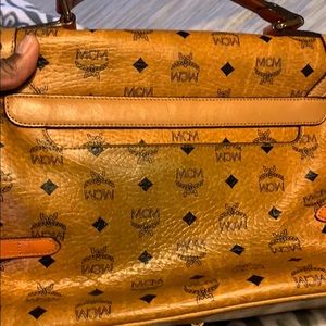 Briefcase-like crossbody bag. Can be carried by strap also. See all pics for condition, especially pic 6. Darkening that does not take away from the bag at all and cannot be seen when worn. Nice size. Dimensions: 15W x 10 H x 5.5 D. Final price drop! Please do not make any offers for anything lower. Dust bag included.