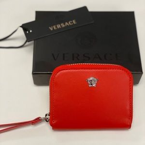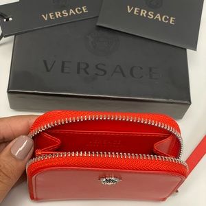 Luxury Versace zip wallet with silver Medusa