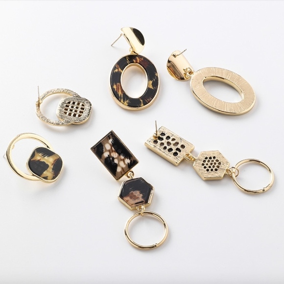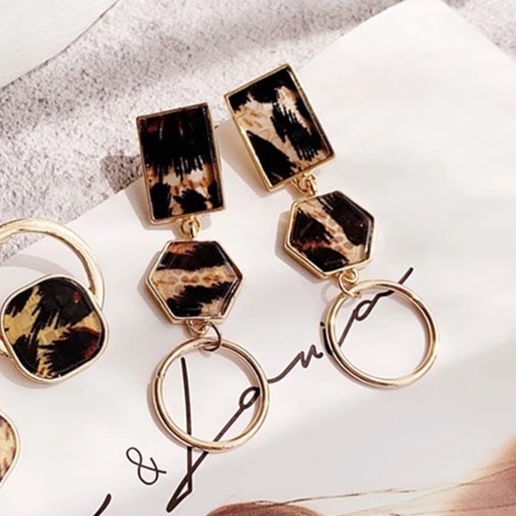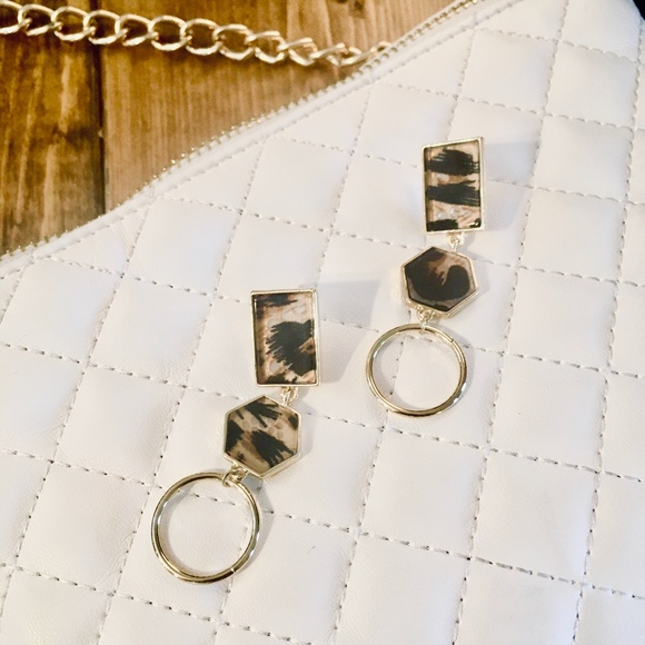 New with tags Leopard Print Geometric Hoop Stud Gold Earrings.