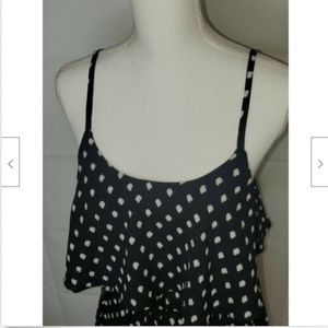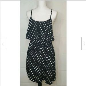 Elle Dress M Spaghetti Straps Black White Polka Dots Ruffle Elastic Waist Mini.