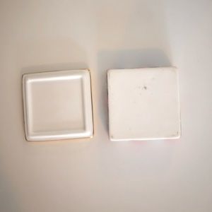 Dimensions: (square) length/width: 7.5cm; depth of box 2.5cm; depth with lid 3.5cm