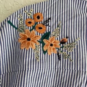 The most beautiful embroidery on a pin stripe button down! Love this top but unfortunately it is a size too big for me.