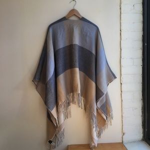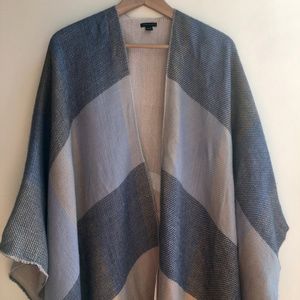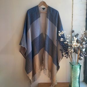 Ann Taylor Shawl Poncho • One Size • Dark blue, light blue, cream, and white. Tassel detail.