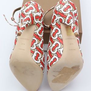 NIB Burberry Wiltkin Triple Stud Monogram Print Leather Point-toe Pumps