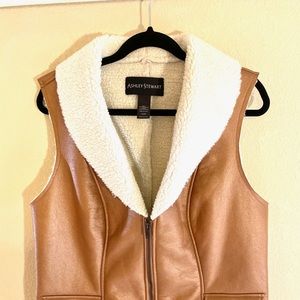 Ashley Stewart Faux Leather Faux Sherpa Vest