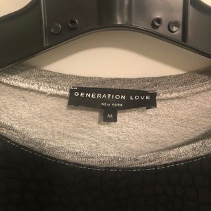 Generation Love Size Medium heather grey sweatshirt with black faux leather embossed croc skin. Embossed Croc Skin pattern on front panel adds detail to this sweatshirt.