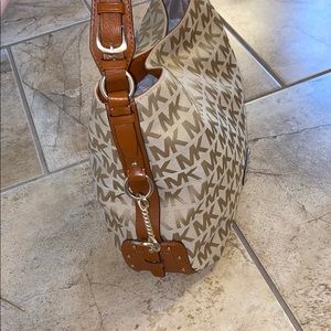 This medium-sized Michael Kors purse is in very good condition, and comes from a smoke-free environment. Bag looks new, with the exception of a few very faint markings that are hardly noticeable, except when examined closely. Refer to pics. 2 small markings are also present on the bottom of the bag. Inside is also in very good condition. A couple of faint markings may be present, but there are no makeup stains. Overall, bag was taken care of well, and is ready to be added to your collection!