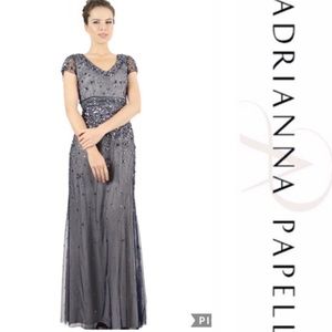 Adrianna Papell short sleeve gem and sequin long dress