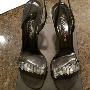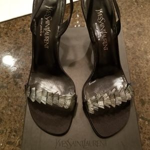 Gorgeous and elegant YSL designer slingback sandal with beautiful feather detailing. New in box with shoe bag. Never worn. In pristine condition. Orginial price: $580. (Tag on box). 100% Authentic.