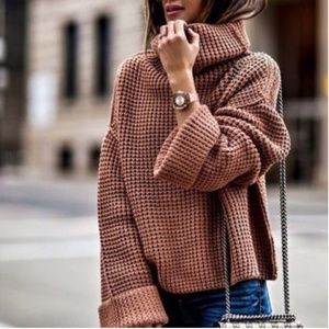 The cutest chunky waffle knit sweater in Terracotta. So comfortable and warm. Only worn three or four times, excellent condition.