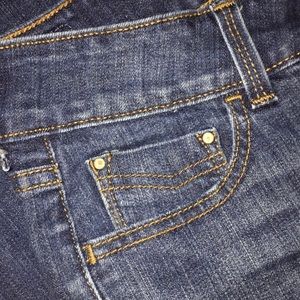 These Slender Bootcut 526 jeans are still a little crispy bcs they were only worn and washed one time. The back pockets are so cute! Take a peek at the pic that has the pen in the pocket again. The button is actually just decorative bcs the pocket is behind the flap.