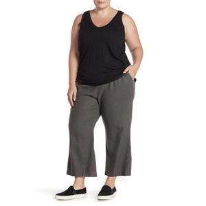 Caslon Womens Straight Pants Gray Elastic Waist Pockets Linen Blend Plus 2X New