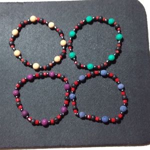 Lava stones, each have black and colored stones to balance the glass red flames. Mixed in the middle is hematite (nonmagnetic) to heal the urge of rage pior to manifestation for a stamina strength . Wear them together or alone.