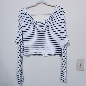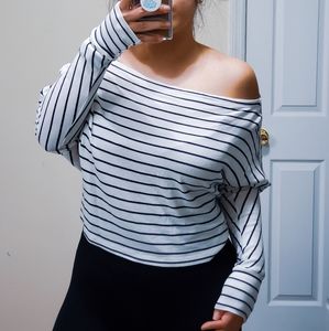 White & Navy Striped Off Shoulder Top Medium