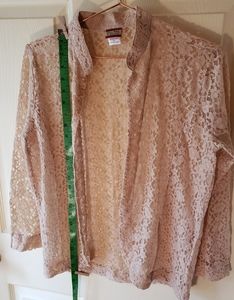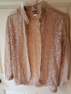 Tan lace topper by Tudor Court sz S. Perfect condition, can be dressed up or down; very versatile. Gives your outfit a touch of femininity.