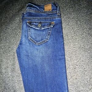Size 0 distressed boot cut stretch American Eagle jeans. I only wore these one time. They are in perfect condition, other than the intentionally distressed parts of course.
