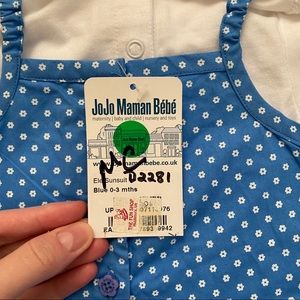 Adorable, preppy & chic Baby Girls’ blue and white elephant sunsuit / romper, plus a separate white collared onesie. This is a fantastic outfit for summer with a sweet elephant appliqué, elasticated straps for a great fit plus button back and popper leg openings for easy diaper changing. 100% cotton. This outfit is new with tags and has never been worn. In excellent condition! Sells in boutiques like Maisonette.