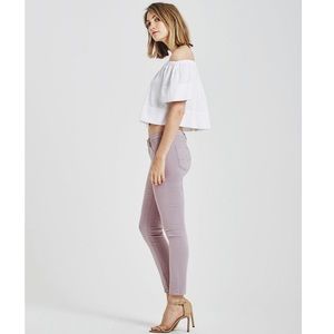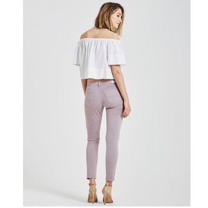 NWOT. Our popular ankle-length skinny returns in stretch sateen that's been sulfur-dyed for a pretty shade of pale lilac. Zipper fly, button closure.