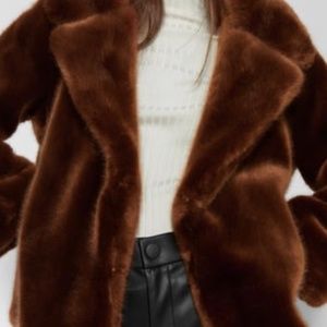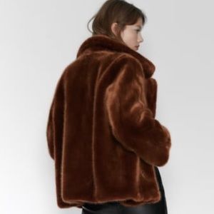 ZARA Faux Fur Coat:Brick, US S, M, L, XL
