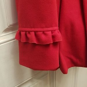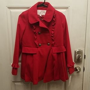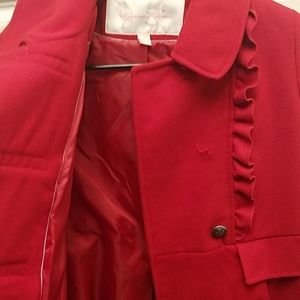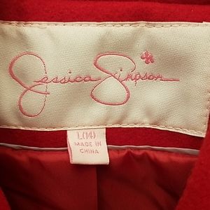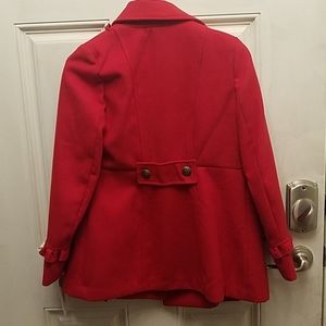 Here I have a ~Brand New~ Jessica Simpson Peacoat size Large in Red. This coat is beautiful and is near flawless but is missing two buttons. My advice would be to take the two off the back to replace the two on front and either put new buttons on the back or to leave it as is, it's completely up go buyer, obviously, just trying to be of help!