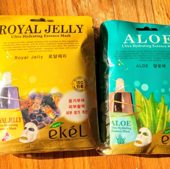 10 Aronia, 10 Royal Jelly, 10 Green tea, and 10 aloe mask sheets in brand new packaging by Samsung. Calms, hydrates, and soothes. Great to refridgerate so you can cool your face from sun burns or fractional laser treatments. I offer every&any additionally bundled item/s $3 off. Just place a ❤️to the item/s& I will get back to you with the offer.