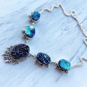 925 Sterling silver blue druzy chocker necklace