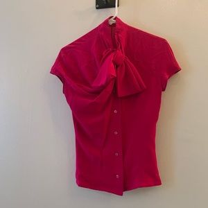 100% silk. Original Dior blouse from the runway. Size 4 but smaller to size. Closer to a size 0-2. Great paired with a pencil skirt, trousers or jeans!