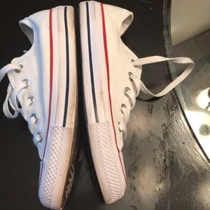 US 6 , UK 4, EUR 36.5, CM 23 White white shoes strings, red and blue lines, worn a few times, has a lil scuff on the left shoe however clean and in great condition, please look closely at the pictures. Thank you.