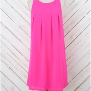 Gorgeous classic cut hot pink dress. Perfect for a fun pop of color in the summer. This dress features a sleeveless design with an exposed zipper. The material is lightweight and flows with your movement.