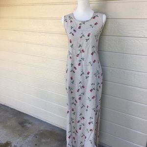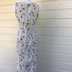 Unique rare dead stock VINTAGE FLORAL MAXI DRESS size 6. 55% linen 45% rayon. Dry clean. 49" Length 34" chest 32" waist. Super cute 🌹👸🏻 vintage cocktail elegant look