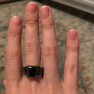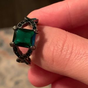 Green Emerald Ring Zircon Black Gold Filled Cross