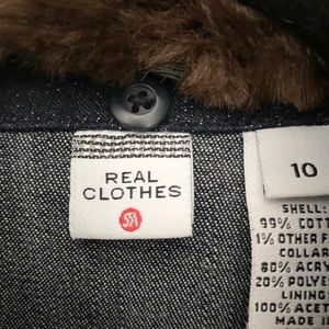new Saks 5th Ave ༄ Vegan Fur Trim Zip Front Jacket ༄ Dark Indigo Denim ༄ Size 10