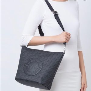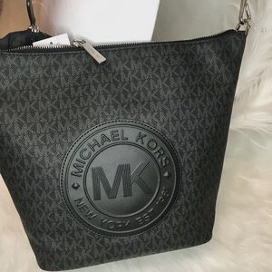 NEW MICHAEL KORS BLACK BUCKET MESSENGER FULTON
