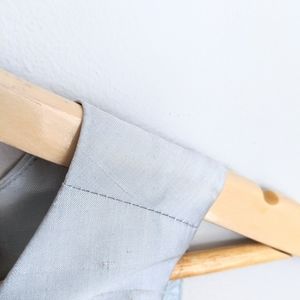 Plum brand silk dress with beaded hem. Shimmery ice blue colour. Size 12 Petite, but fits SMALL. Made in USA.
