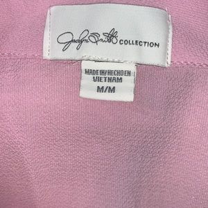 Pink front Zipper, 3/4 Sleeve, two pocket V neck Blouse. Brand New with tickets.