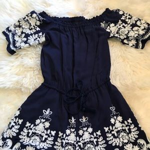 Navy and white embroidered romper. This is a small but could fit up to a large.