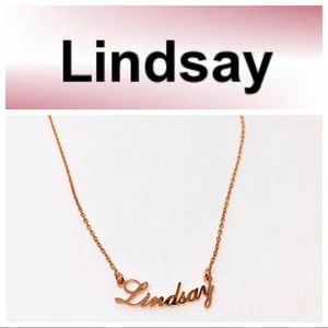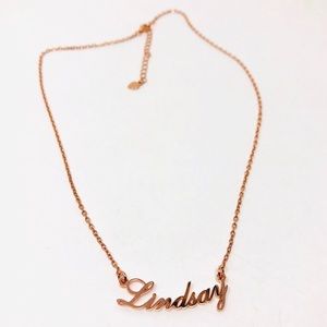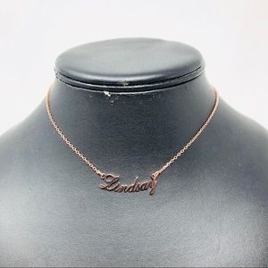 “LINDSAY” rose gold sterling silver name necklace, NWOT