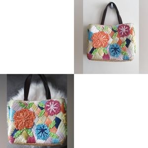 Red Fish Designs like new colorful straw purse. Super cute eye catching and unique. Straw Hobo purse. Vintage Summer and Spring beauty. Sunflower appliques straw embroidery. Snap close