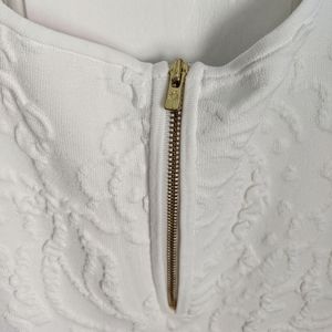 Gorgeous and sooo comfy! Lilly Pulitzer white dress. Worn a few times but in great condition! Lilly doesn't make this fabric much, it is heavy but also cool to wear... Very flattering and sexy without showing too much. I LOVE this dress! The pattern has shells and such, but you have to concentrate a little to pick them out/notice.