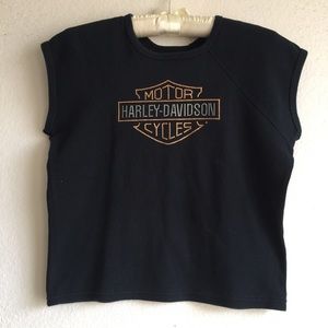 Cute black top with the Harley logo in orange jewels. It also has the San Diego dealership indication on the back.