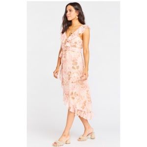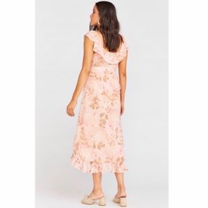 The perfect feminine and flirty pink dress. This dress features ruffle detailing, low cut back and the perfect slit. Pair this dress with a simple heel and cute clutch and you'll be ready to twist and twirl all night long!