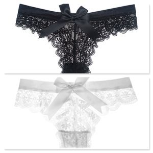 Bow Detail Lace Low Rise Thongs Black or White