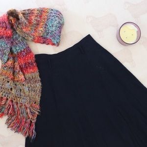 1950s flare pinup style midi circle skirt. Navy, wool-like feel. Belt loops and zips in back.