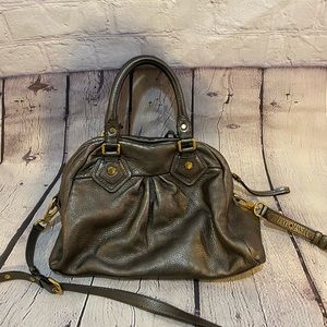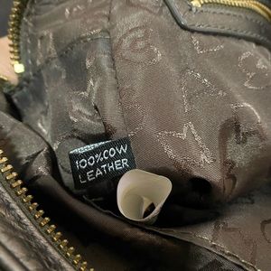 Metallic handbag with gold tone hardware. No stains inside or outside. Very good condition.