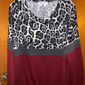 Snow leopard & burgundy sweater. Super soft and stretchy