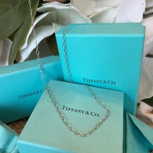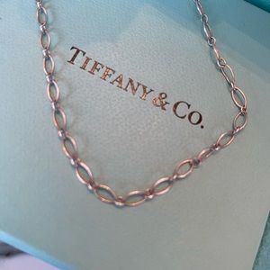 Tiffany& Co.oval link 18”chain necklace. Hallmark stamped AG 925 Tiffany &Co.like new only wore a couple times. Add your favorite charms, it goes nicely w/retired stencil star charm in other listing check it out! There’s nothing like Tiffany’s blue box love! Perfect Valentine’s Day & perfect for you.